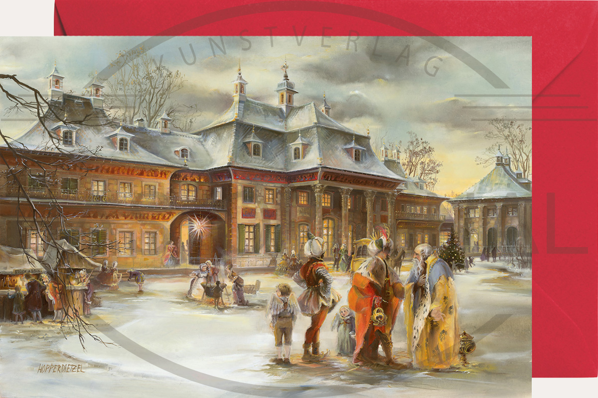 Die Künstlerin hat sich für unseren Miniadventskalender von den orientalischen Dächern und Gesimsen des Wasserpalais inspirieren lassen, die im Barock sehr beliebt waren und hat die drei Weisen aus dem Morgenland aus der biblischen Weihnachtsgeschichte in die orientalische Stimmung des Pillnitzer Schlosses zauberhaft eingefügt.