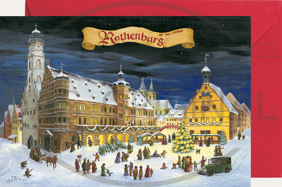 Den Miniadventskalender im Grußkartenformat von dem beschaulichen Städtchen Rothenburg ob der Tauber muss man an alle seine Freunde verschicken. Rothenburg ob der Tauber ist eine besterhaltene mittelalterliche Stadt mit einer 4 km langen, komplett erhaltenen, Stadtmauer. 2 km der mittelalterlichen Stadtmauer sind heute noch begehbar und überdacht.